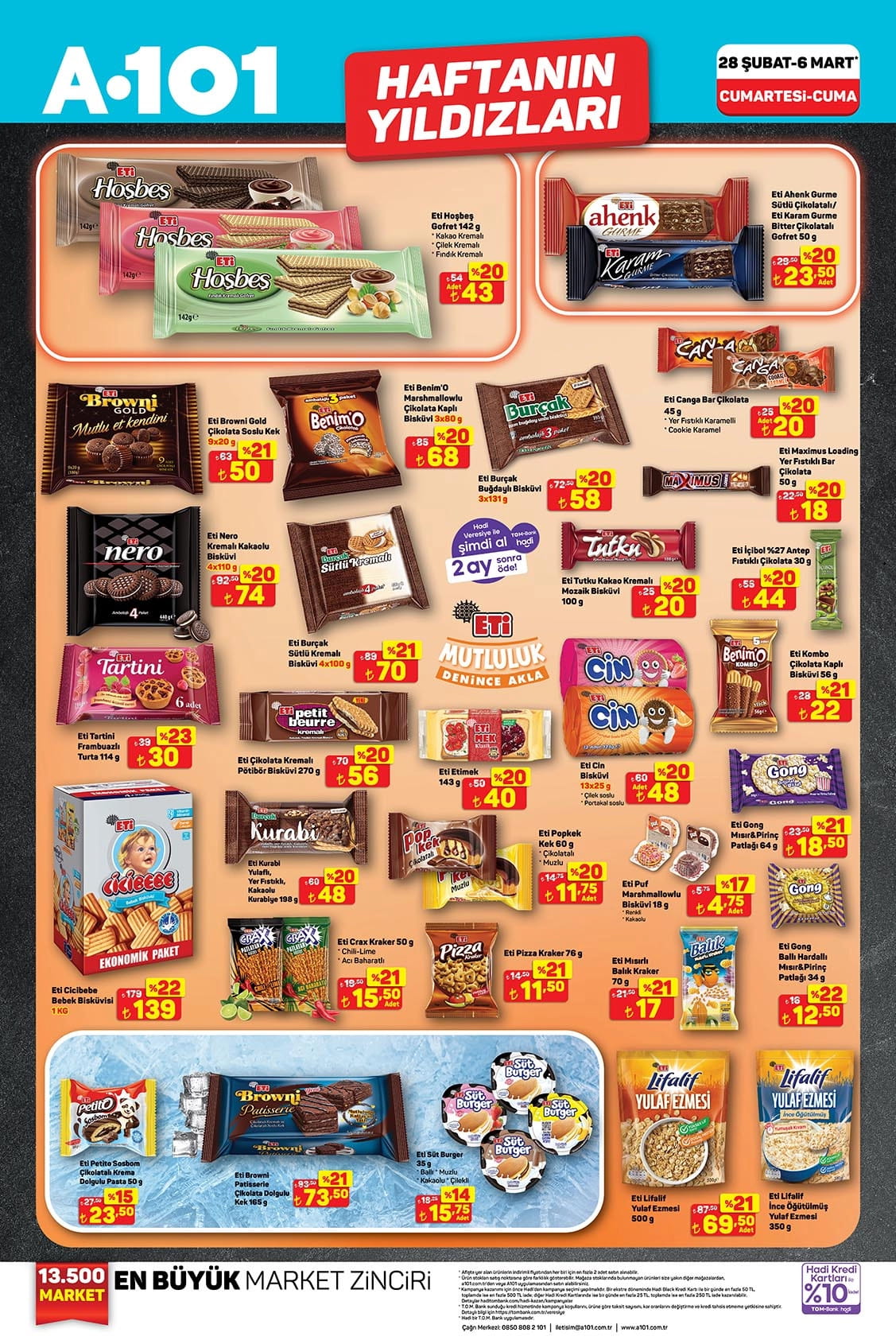 A101’in 6 Mart tarihine kadar raflarda bulunduracağı ürünler ve fiyatları yayınlanan kataloğa göre şöyle: