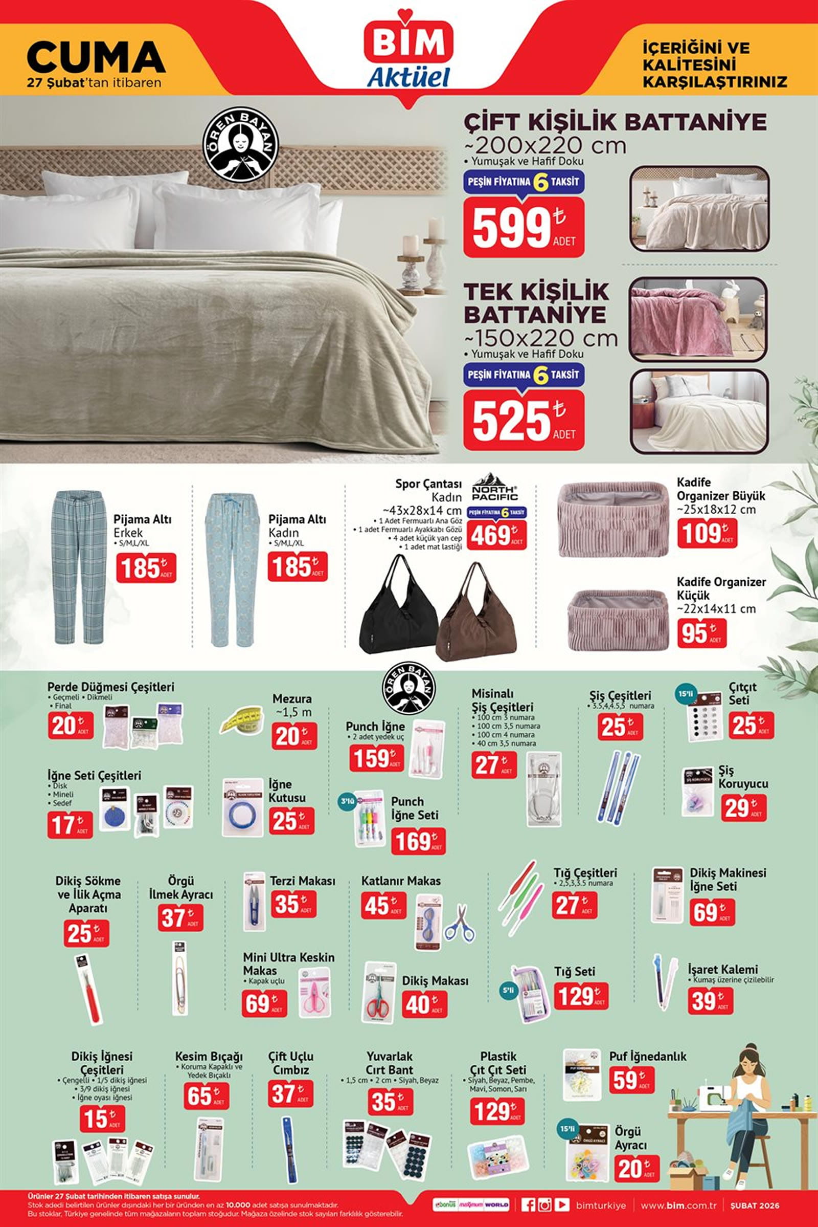 BİM’in 27 Şubat’tan itibaren satışa çıkaracağı ürünler ve fiyatları yayınlanan kataloğa göre şöyle: