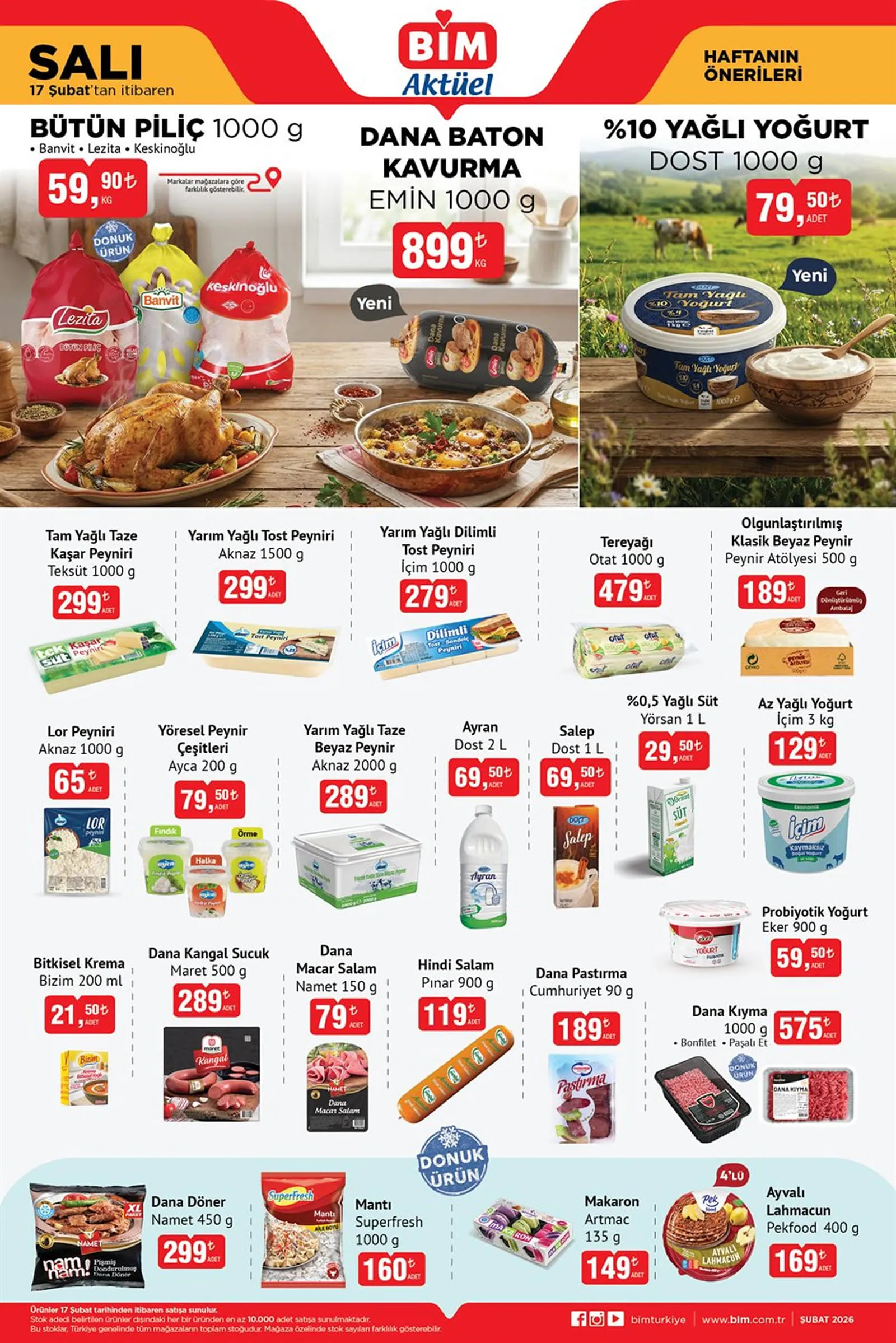 BİM’in 17 Şubat tarihinde raflara dizeceği ürünler ve fiyatları yayınlanan kataloğa göre şöyle: